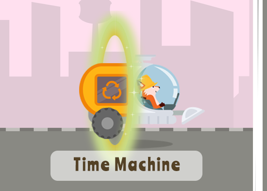 In Time Machine, kids team up with Frankie and his extraordinary time-traveling truck on a mission to clean up the streets, supporting SDG 6: Clean Water & Sanitation. Players sort plastic, glass, organic, and aluminum waste while discovering an essential environmental insight—how long different types of waste remain in our environment.